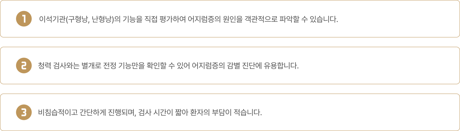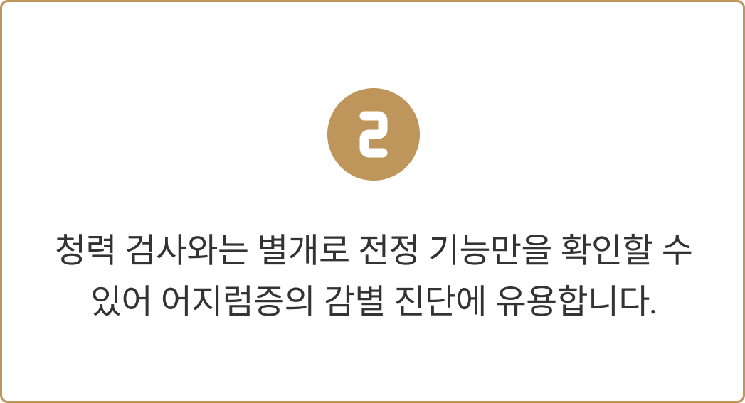 난청 여부와 관계없이 평형 감각의 이상 여부를 확인할 수 있습니다.